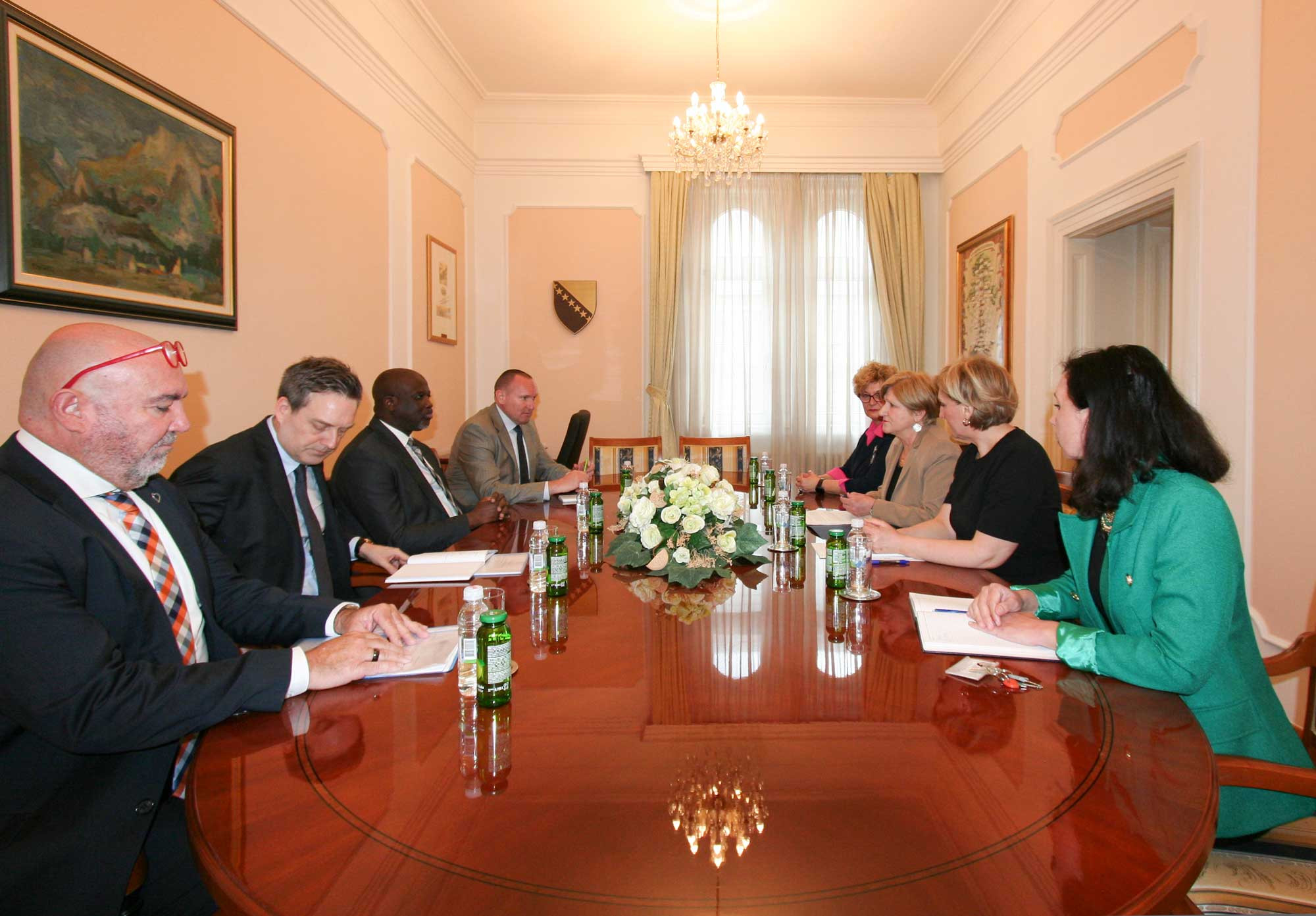 Danas je Ustavni sud Bosne i Hercegovine posjetila delegacija Ujedinjenih naroda Međunarodnog rezidualnog mehanizma za krivične sudove u Hagu (Mehanizam) na čelu sa Abubacarrom Tambadouom, pomoćnikom glavnog sekretara UN-a i sekretarom Mehanizma.