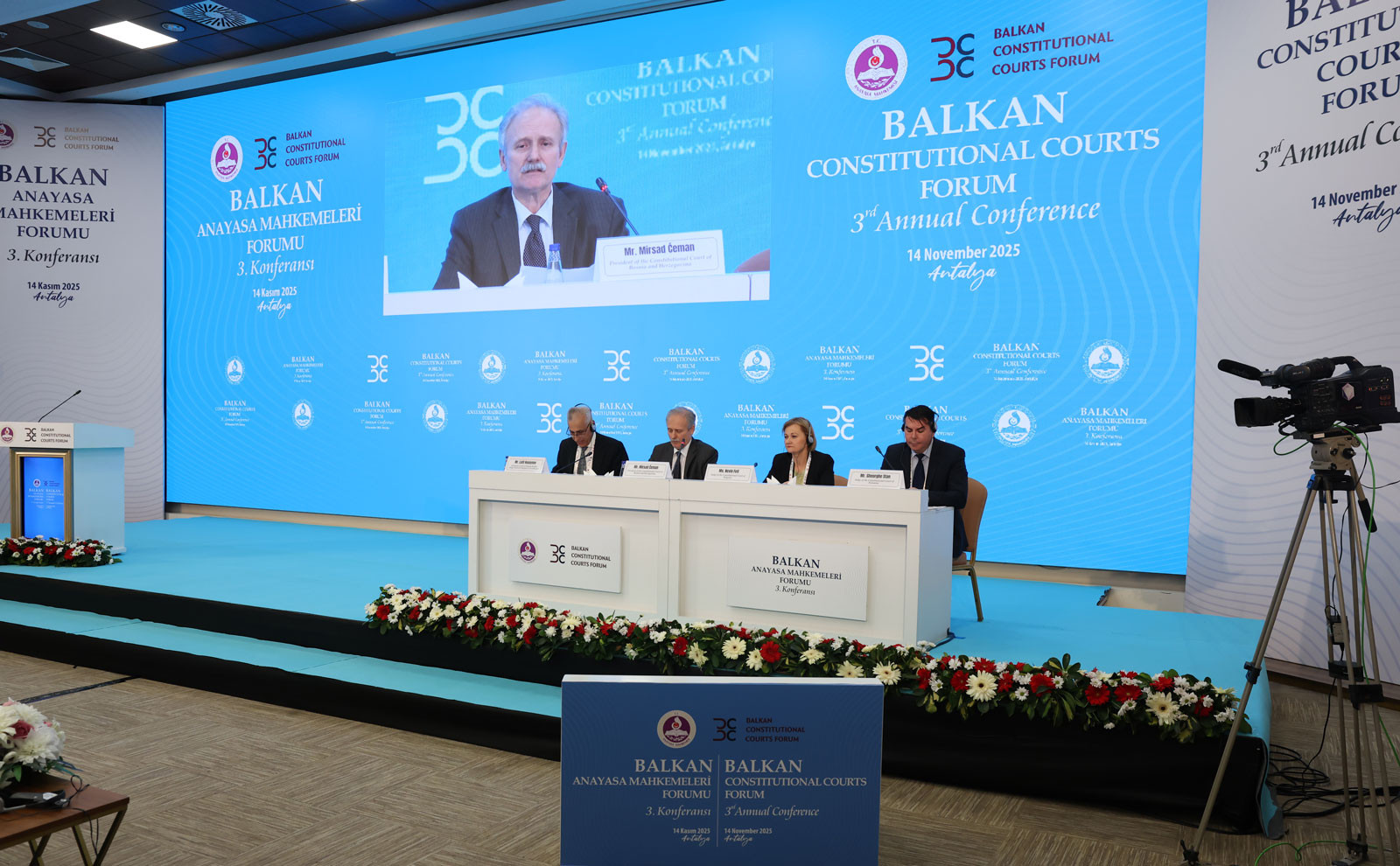Predsjednik Ustavnog suda Bosne i Hercegovine Mirsad Ćeman i šefica Kabineta predsjednika Erda Začiragić učestvovali su u radu Treće godišnje konferencije Foruma balkanskih ustavnih sudova, koji je od 13. do 16. novembra 2025. godine održan u Antaliji, Turska. Ovogodišnji forum organizirao je Ustavni sud Republike Turske. Ustavni sud BiH nije član ovog foruma, te je u njegovom radu učestvovao kao posmatrač.