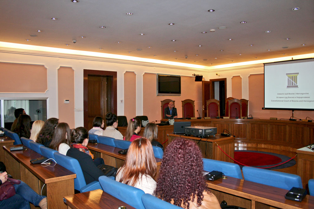 Na zahtjev Europskog udruženja studenata prava iz Sarajeva, posjet je organiziran s ciljem da se studenti kroz razgovor upoznaju s nadležnostima, ustrojem i radom Ustavnog suda Bosne i Hercegovine.